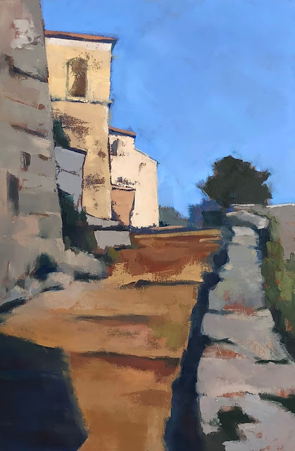 | "Uphill Climb, Ménerbes" 30 x 20, Oil on Canvas (c) Lesley Powell 2020 |